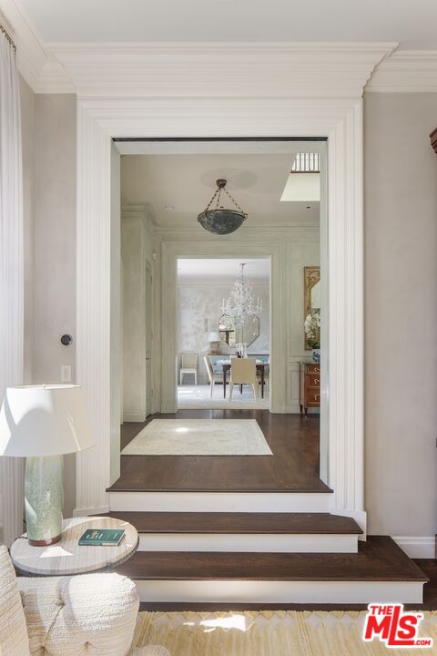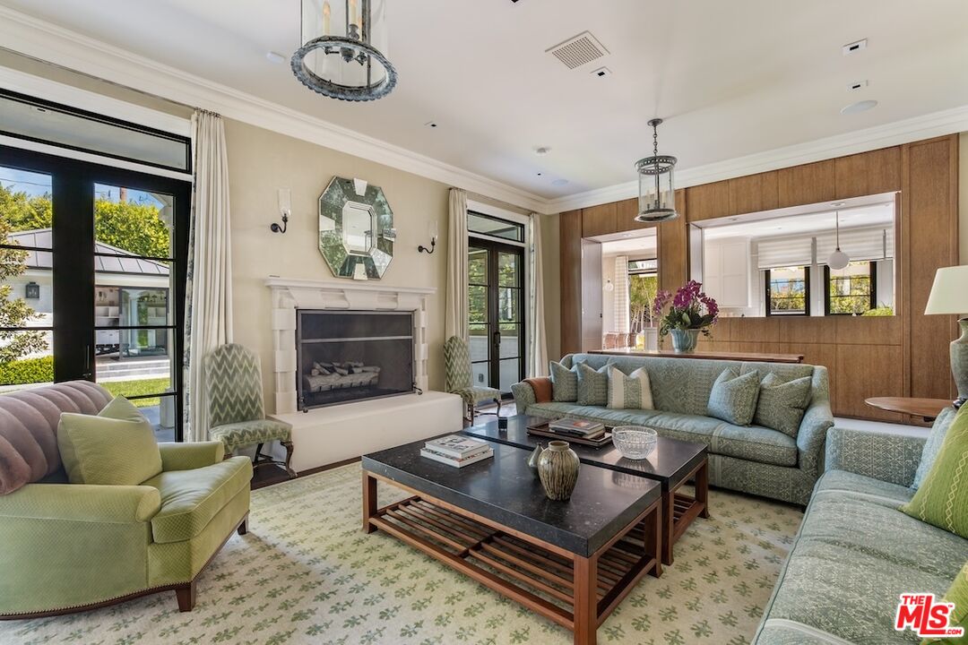 This paragon of traditional architecture is nestled privately behind mature hedges and a gate on a flat, half-acre in the heart of the prestigious flats of Beverly Hills. The estate has been newly curated and furnished under the masterful guidance of designer Michael S. Smith, following his transformation of the White House's private residence. The entry makes an unforgettable statement with hand-painted chalky-stri walls by Maria Trimbell, custom bronze sconces by French sculptor Patrice Dangel, and a sweeping iron staircase adorned with a silk-and-wool runner by Patterson Flynn. In the formal living room, Venetian plaster walls and a Calacatta Viola marble fireplace by Jamb London create an atmosphere of quiet opulence. The dining room stuns with hand-painted Gracie wallpaper and a 19th-century Spanish crystal chandelier. The gourmet chef's kitchen is a study in refined craftsmanship, decorated by Calacatta marble countertops, and state-of-the-art appliances, ensuring peak culinary performance. A large central island offers both ample work and gathering spaces. Thoughtfully situated adjacent to the kitchen, the den duals as a screening room, punctuated by custom walnut paneling, a hand-carved limestone fireplace, and bespoke millwork. The lushly landscaped grounds create a private oasis, featuring a resort-style pool and spa, surrounded by manicured gardens and mature hedging. A detached guest house/gym adds versatility, while multiple outdoor seating areas, a shaded loggia, and elegant hardscaping set the stage for alfresco entertaining. The primary suite is a serene retreat, highlighted by a private sitting room, dry sauna, fireplace, and a private terrace. Dual spa-inspired bathrooms are equipped with Waterworks fixtures, radiant heated floors, and expansive closets with custom dressing rooms. Designed for both relaxation and hosting, 610 North Canon represents a confluence of timeless elegance with contemporary sophistication. This one-of-one trophy property is situated only moments from the world class dining, shopping, hotels, and attractions only downtown Beverly Hills living has to offer.